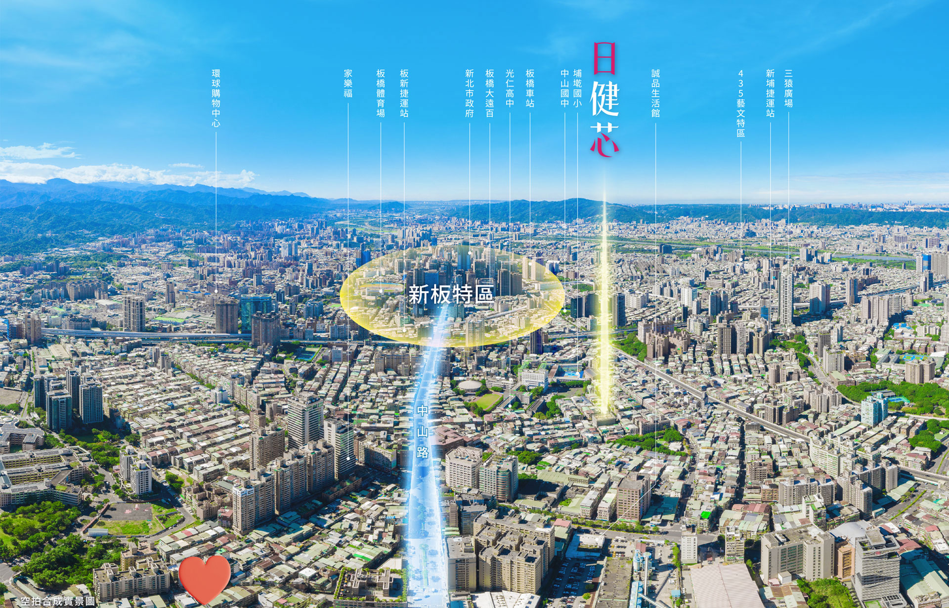 坐擁板橋最好區段,串聯板橋大遠百、誠品板橋三民店、埔墘生活圈、新北市政府、中山路家樂福商圈…,生活與城市最精華一次擁有。